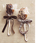 【1】にキャラメルをまんべんなくかける。途中、キャラメルが固まってきたら、湯せんにかけて温め、かけやすい柔らかさにする。全体を手早く混ぜ、スプーン2本で一口大にまとめる(スプーンにのせたまま固めても)。オーブン用シートを敷いたバットに並べ、固まったらチョコペンで模様を描き、乾くまでおく。冷蔵庫で2~3日保存可能。