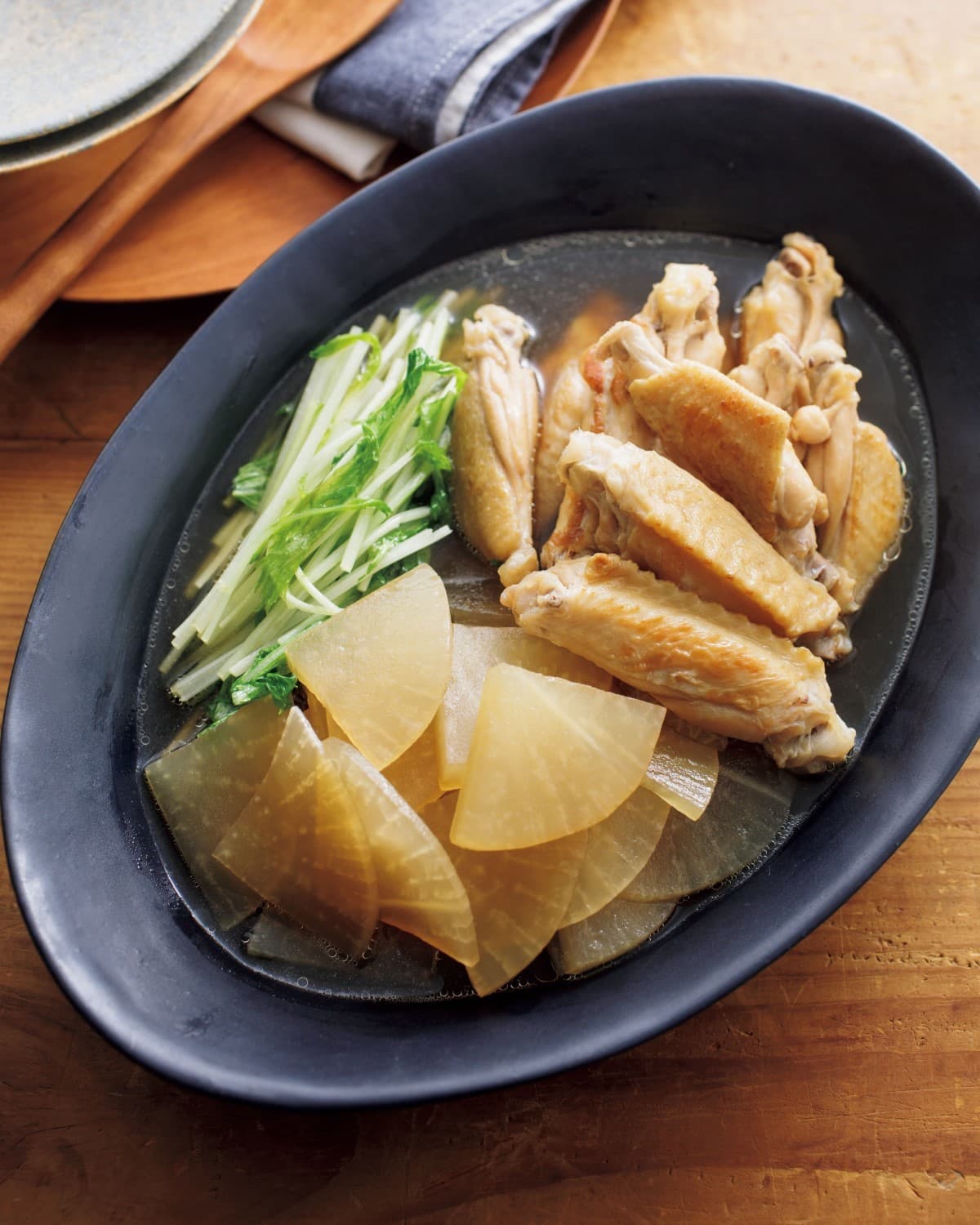 骨つきの鶏肉から出るうまみがしみた大根が絶品。薄切りにすれば短時間で煮上がります。