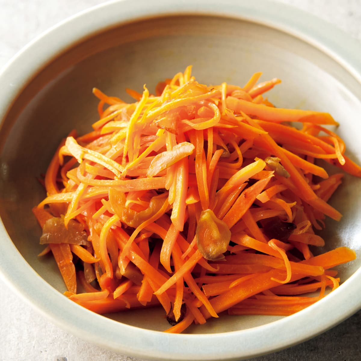 にんじんは皮をむき、幅2~3mmの斜め薄切りにしてから、せん切りにする。ザーサイは粗いみじん切りにする。